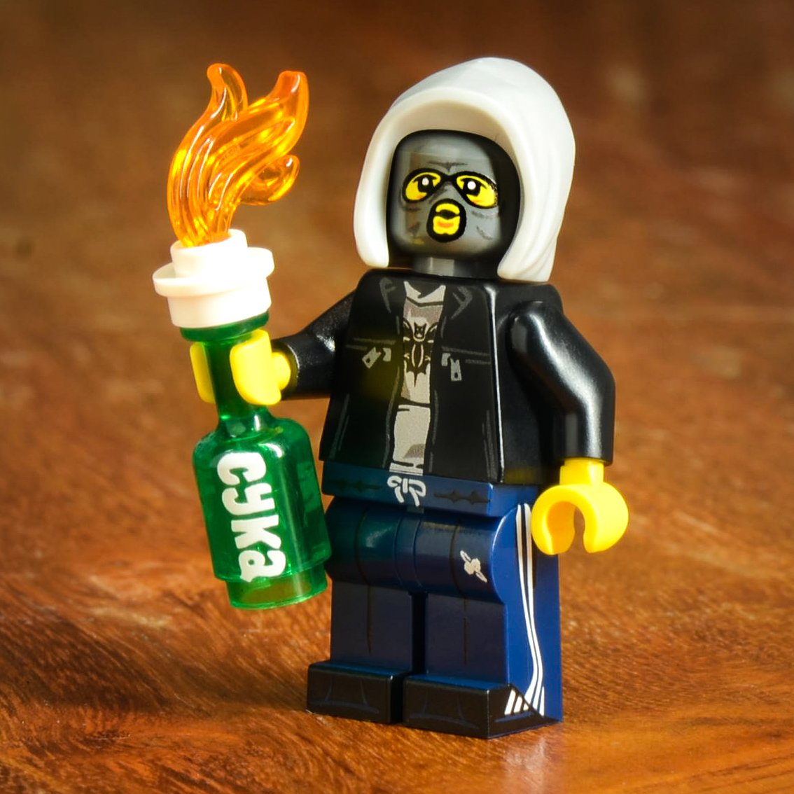 Lego head with Brick Warp EXCLUSIVE balaclava artwork